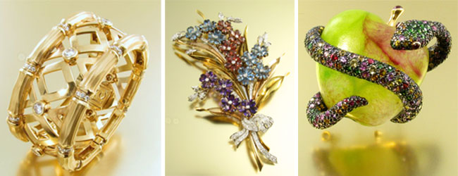 While on the subject of jewelry, one of the country’s premiere estate jewelers, Richter’s from Worth Avenue in Palm Beach, brought out some of its vivid and vibrant David Webb and Jean Schlumberger treasures. Camilla Dietz Bergeron (www.cdbltd.com), specialists in fine antique period and estate jewelry, had impeccable examples of yellow gold bracelets and necklaces from houses like Cartier.
