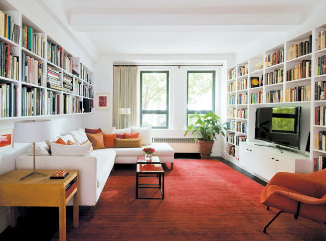 Structural Beauty | A William Wegman photograph hangs below. Milich also made the cocktail tables in the family room, which overlooks Carl Schurz Park. The rug is from Dolma.