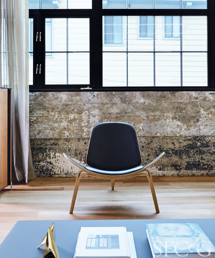 OPA left the original concrete walls exposed. Chair is Hans Wegner.