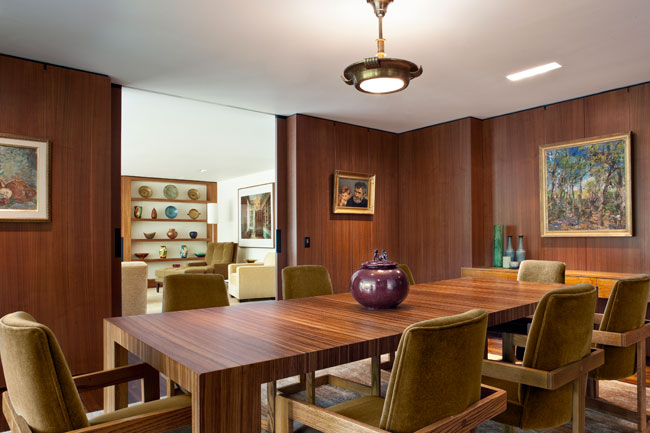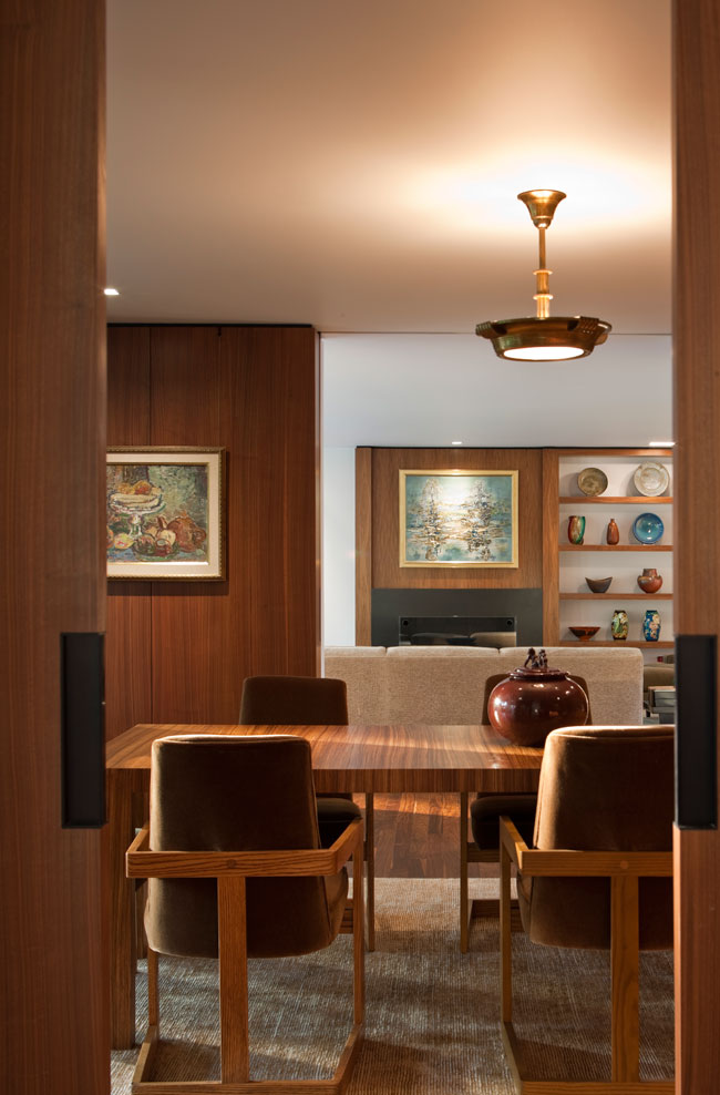Through a unified design concept, the architect successfully transforms a 1950s brick Colonial into a simple, functional and exquisitely beautiful home