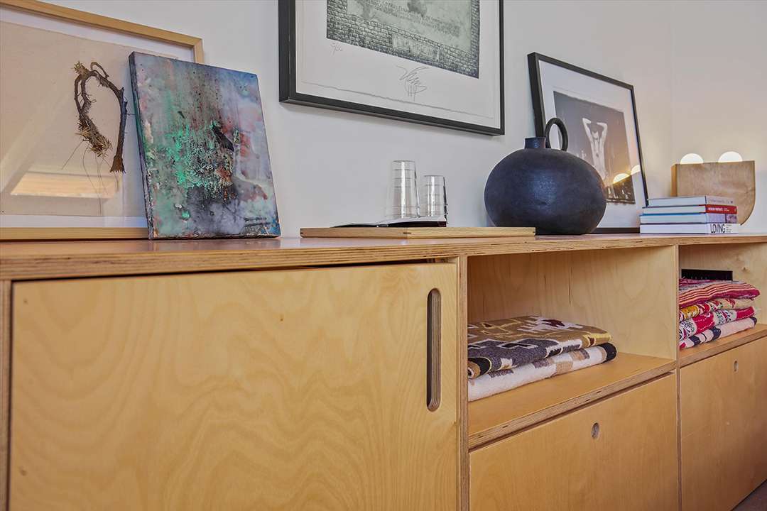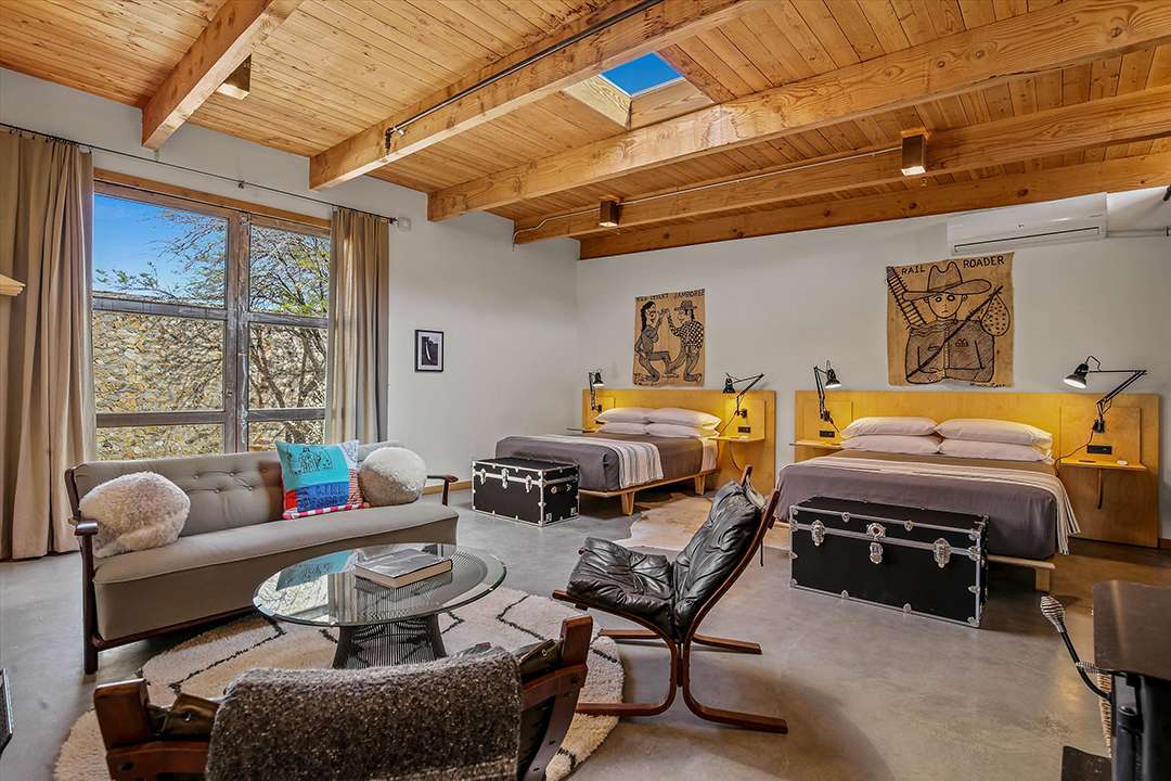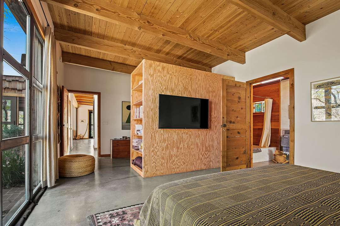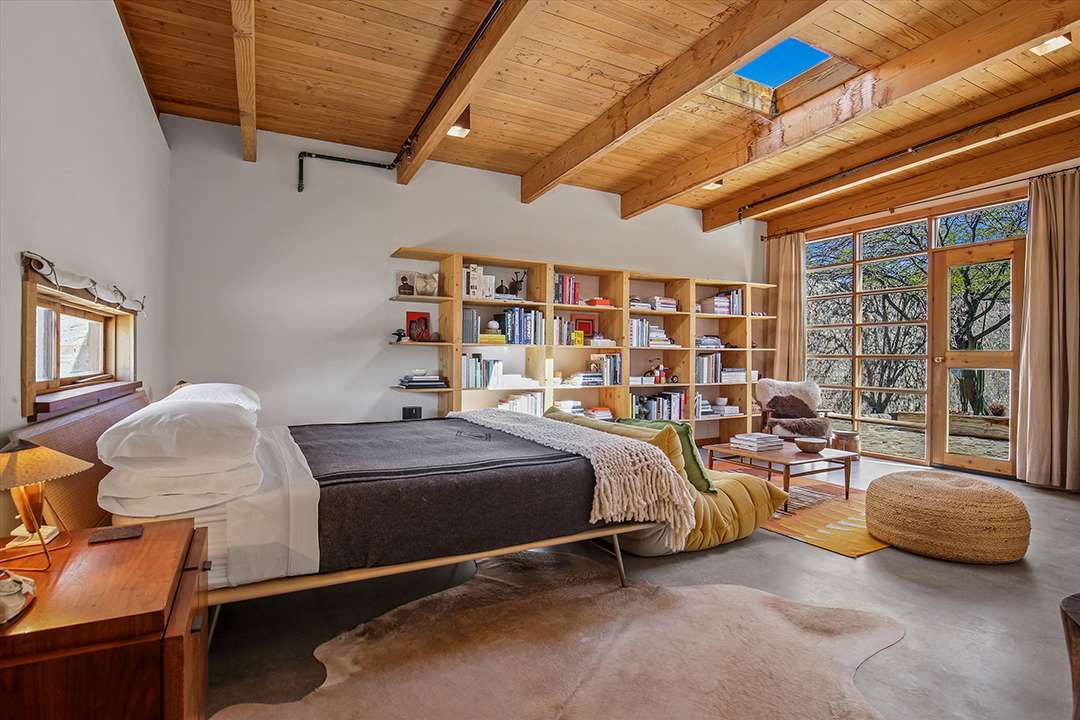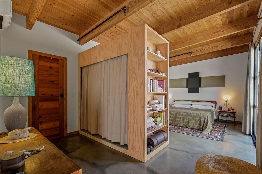 But, perhaps his largest work of art is this Joshua Tree home, which served as his personal residence and studio. Seamlessly sited in the rugged land around it, the home is encased in two hand built stone walls, creating an ultra tranquil and private oasis. The inside of the home ties into the environment around it as well, featuring tons of natural wood and cement while as well as large sliding glass doors that open into the serene courtyard or out to mountain views.