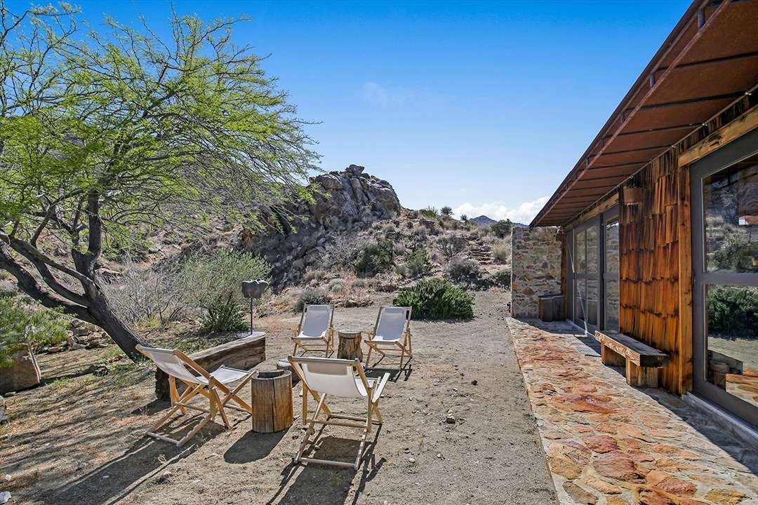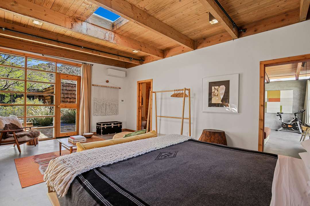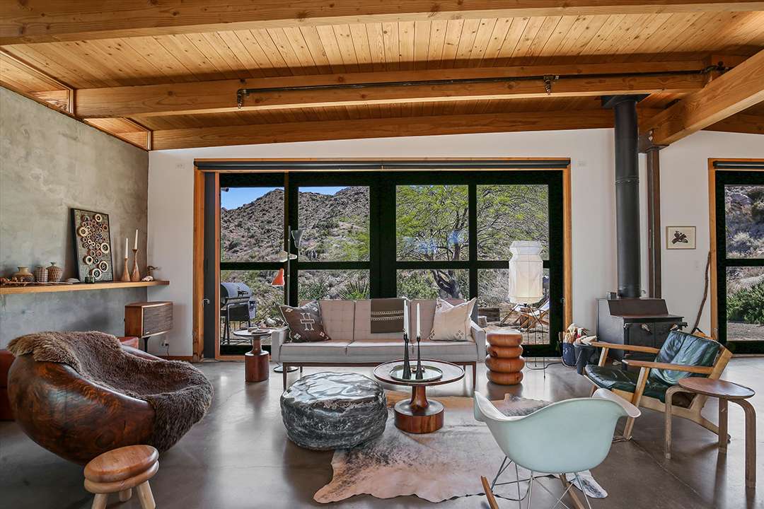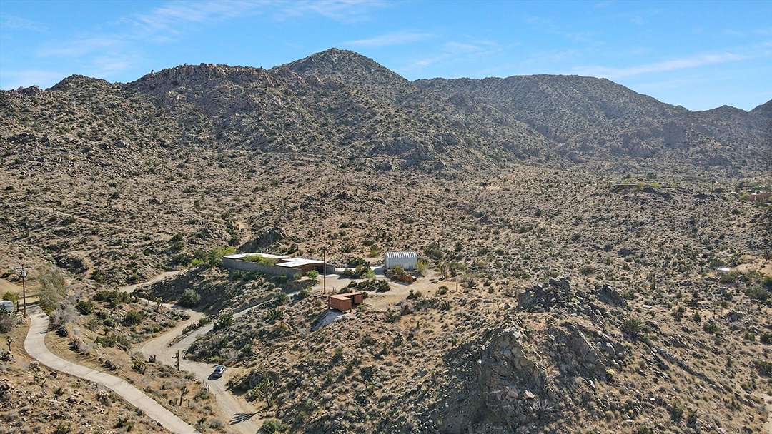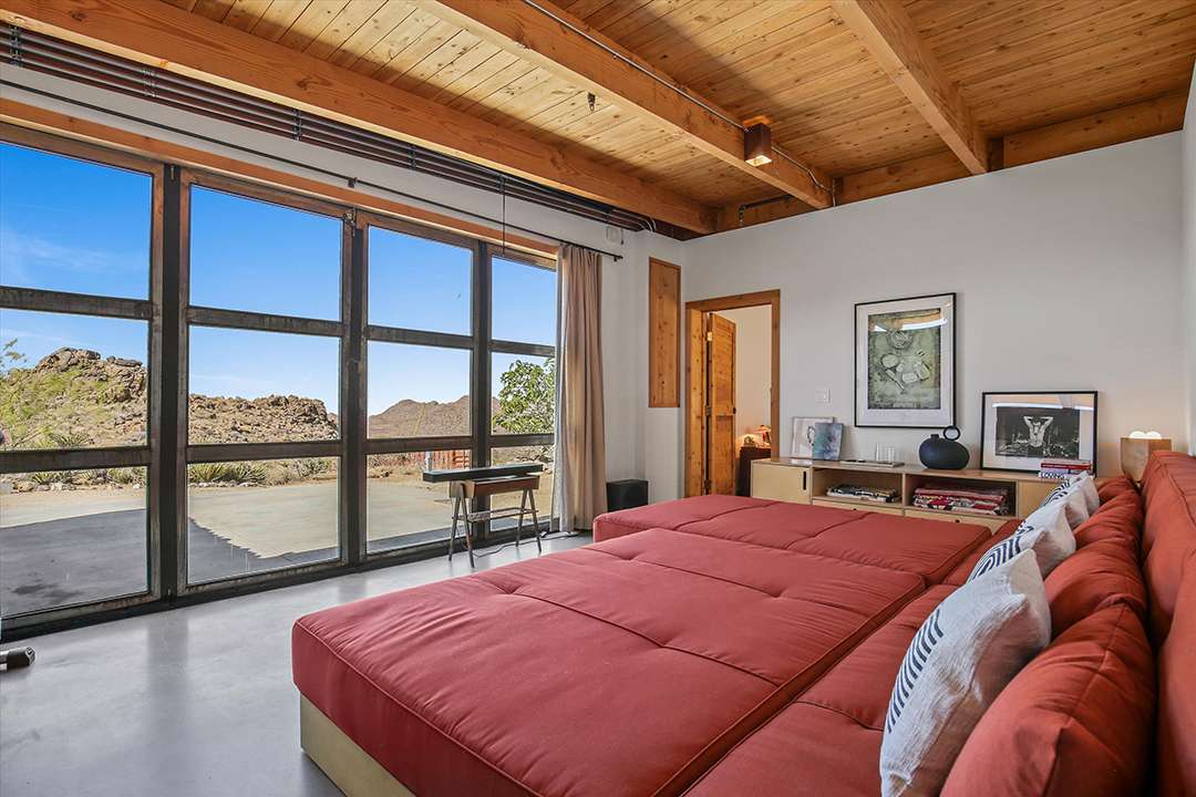 A total of three bedrooms and three bathrooms round out the private spaces, while additional spaces can serve as studios or offices. Also on the property is a Quonset structure, which at its core is for industrial use, but serves as yet another unique design choice on the land. The natural landscapes of Joshua Tree are a wonder in and of itself, and this home only adds to that magnificence.