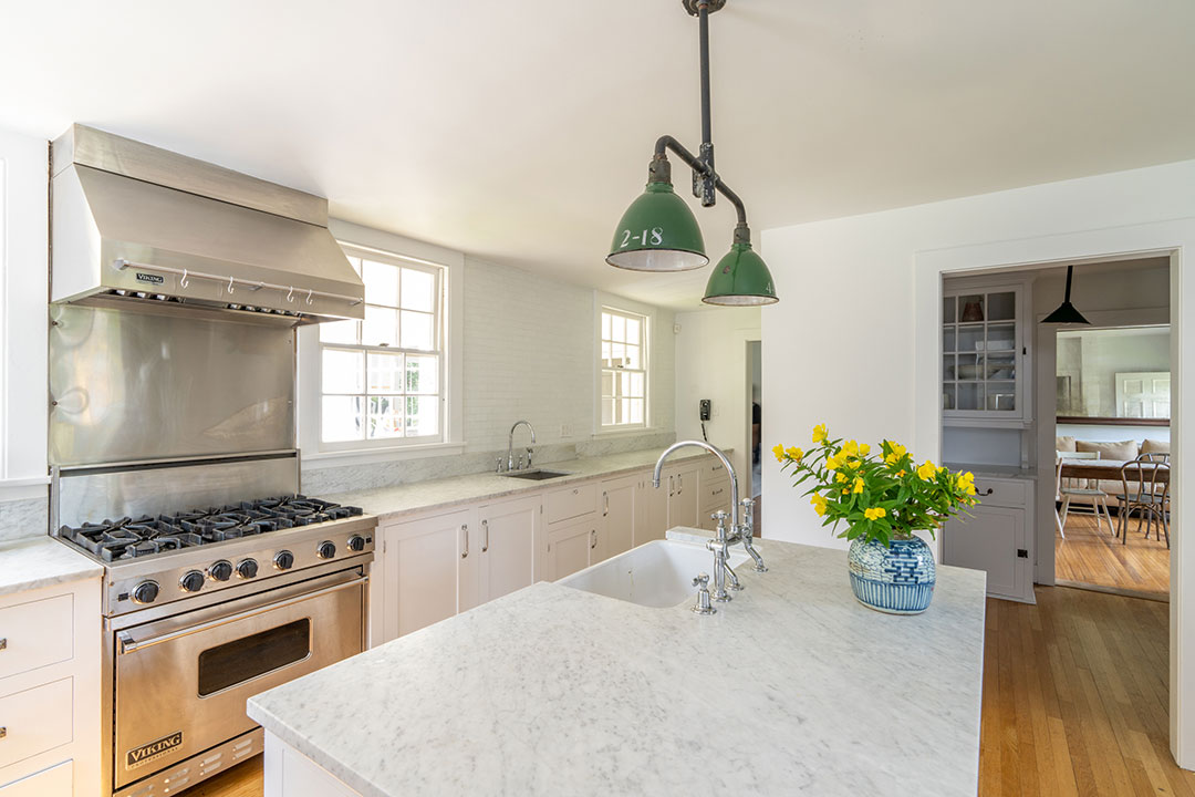 The country compound, known as Spencertown Farm, includes a circa-18th century farmhouse, a barn complex, and a guesthouse. Upon purchasing the property, Baechler worked with Michael Hord and Hiroshi Sakamono of MH3 Design and Construction to update the Colonial-style structures and sweeping grounds. Wide-plank floors, original doors with antique hardware, and vintage lighting hand-picked by the artist add extra charm to the residence. Of course, there is an art studio, which is situated in the barn. Baechler’s bronze sculpture, Walking Figure, is featured in the yard, among others.