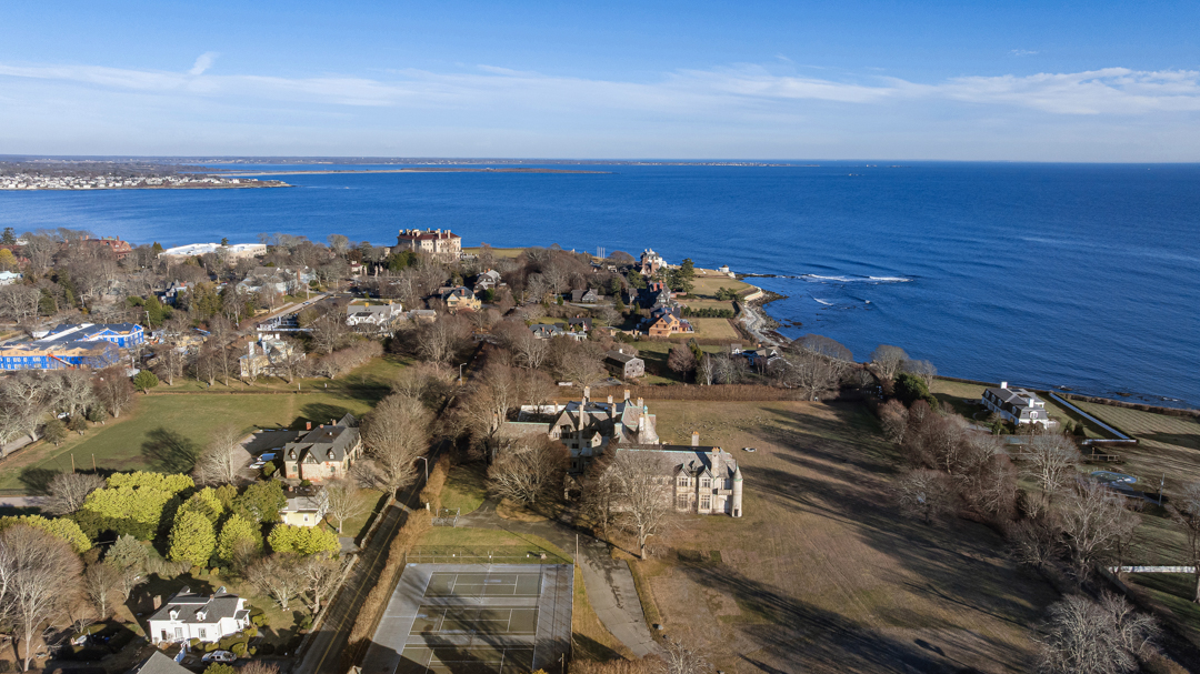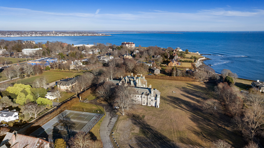 Bourbon whiskey businessman Edson Bradley Jr. had Seaview Terrace built in 1925 as a 50th anniversary gift for his wife. But, what is it like 101 years later? It sits on eight acres between historic Bellevue Avenue and Cliff Walk. There are 40-foot ceilings, grand ballrooms and galleries, circa-1480 Venetian frescoes, 22 stained-glass panels documented by Corpus Vitrearum, and not one or two—but three—tennis courts. Oh, and 29 bedrooms for close friends.