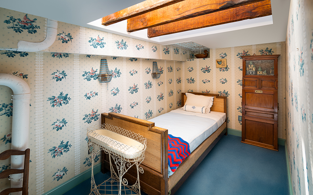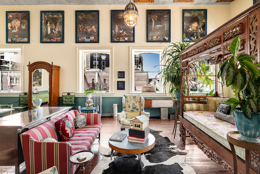 Today, artistic souls still find themselves drawn to the character, beautiful architecture, and quirky residences these neighborhoods hold. For example, famous surrealist Meghan Boody has a vibrant penthouse loft in Tribeca. Boody, whose work is part of the Whitney Musuem collection, has spent years layering her home with a variety of eccentric patterns, colors, and, of course, her own bold pieces. The time has come for a new adventure, however, and the artist just listed it for $5.3 million.