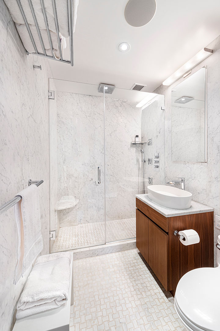The apartment has an open floor plan, two bedrooms, and a private terrace ready for the magic of spring. It’s perched in the 1931-built Parc Vendome—a doorman building with gardens, a roof deck, and billiards, music, and banquet rooms—close to Central Park, Columbus Circle, Lincoln Center, Broadway, and, of course, the John Barrett Salon.