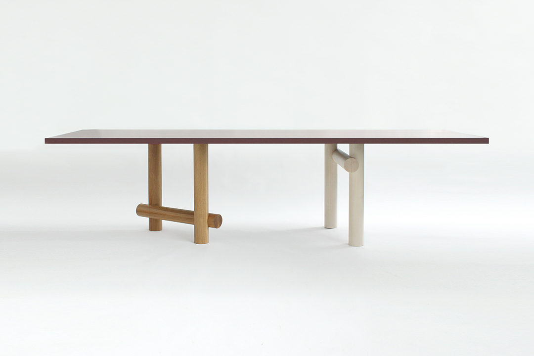 New York-based design firm Egg Collective showcased the Kenny Dining Table. Created by Stephanie Beamer, Crystal Ellis, and Hillary Petrie, the playful but austere, Kenny Dining Table’s features a customizable composition that effortlessly adapts to various sizes and shapes, its solid wood tabletop works equally well with metal or wooden legs. (this is our standard description for the Kenny — the one for this show is a custom / special material palette)