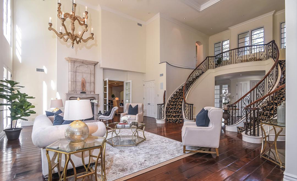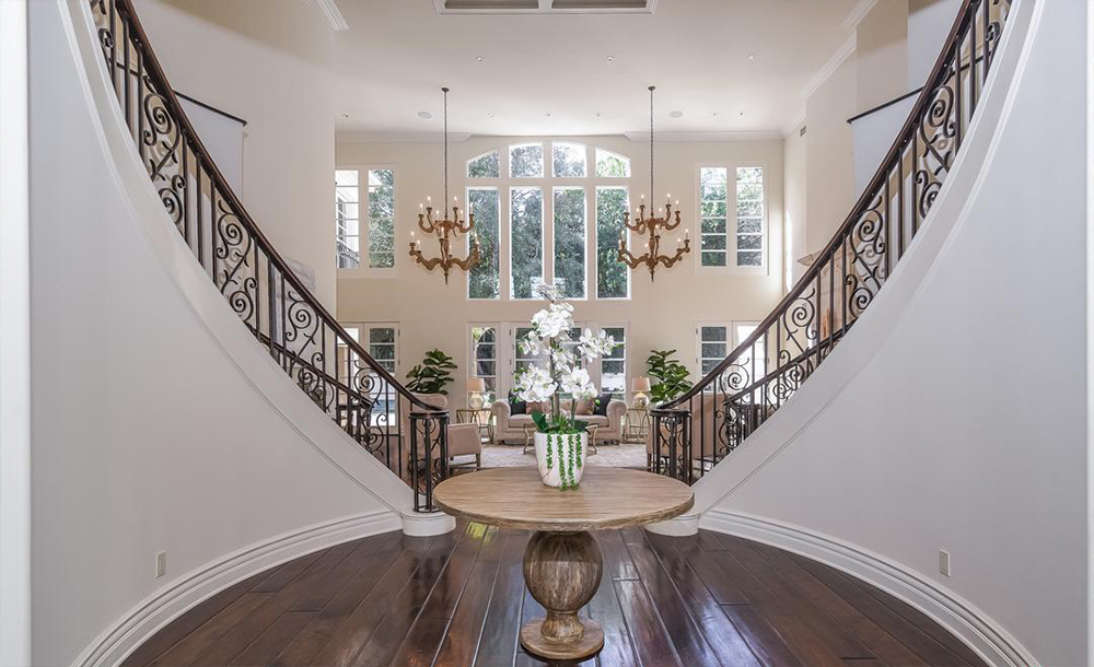 Three years after announcing the end of their marriage in 2015, pop punk queen, Avril Lavigne, and Nickelback’s leading man, Chad Kroeger, have decided to put their chateau-inspired home on the market for $7.999 million. Since they originally dropped only $5.4 million on the property, this former Hollywood couple stands to make quite a profit.Surrounded by lush greenery, this corner lot in the star-studded Sherman Oaks neighborhood provides utmost privacy with immaculately crafted vined walls and fencing. Upon entering the 10,000-square foot residence, visitors will be captivated by the two-story floor-to-ceiling windows that brighten the living area and illuminate the impressive double circular staircase. Soft, neutral walls contrast the rich flooring to create balance, but the grandeur of the six bedroom, nine bathroom abode is certainly clear.As the former home of two musicians, it’s no wonder this luxurious mansion comes equipped with ample options for entertainment, including a professionally built home theater. A newly built rec room with stunning skylights and high ceilings features a full bar as well as an expansive space for hosting guests. Outside, the backyard boasts a heated salt-water pool and spa, several lounging areas, a bar, and a fire-pit.Chris Pauloski of Pacific Union International holds this illustrious listing, which Variety first reported.