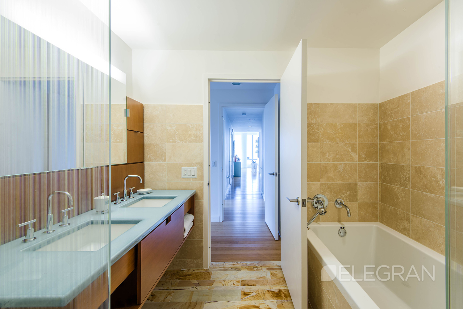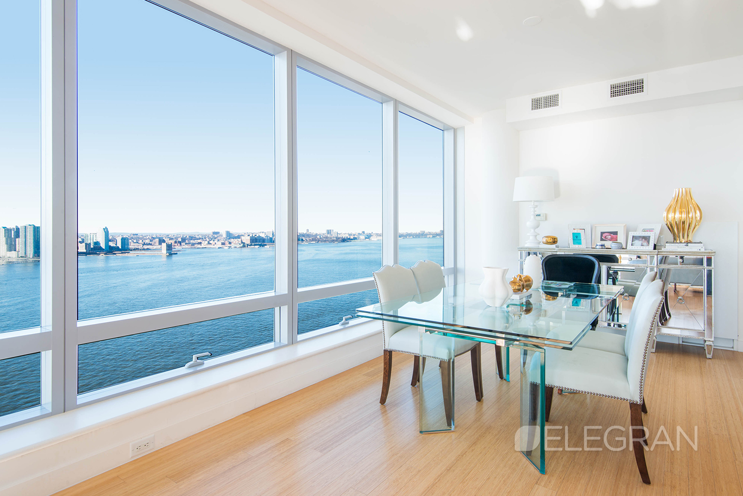 His new home boasts 55’ of floor-to-ceiling windows that capitalize on views of the Statue of Liberty and New York Harbor and flood the open living area with light. According to the listing, he’ll be able to “enjoy breakfast in the lovely dining area or lounge in the great room while taking in unparalleled views of the Hudson River.” The apartment’s 3 bedrooms all feature hardwood floors, en-suite bathrooms and oversized south-facing windows.