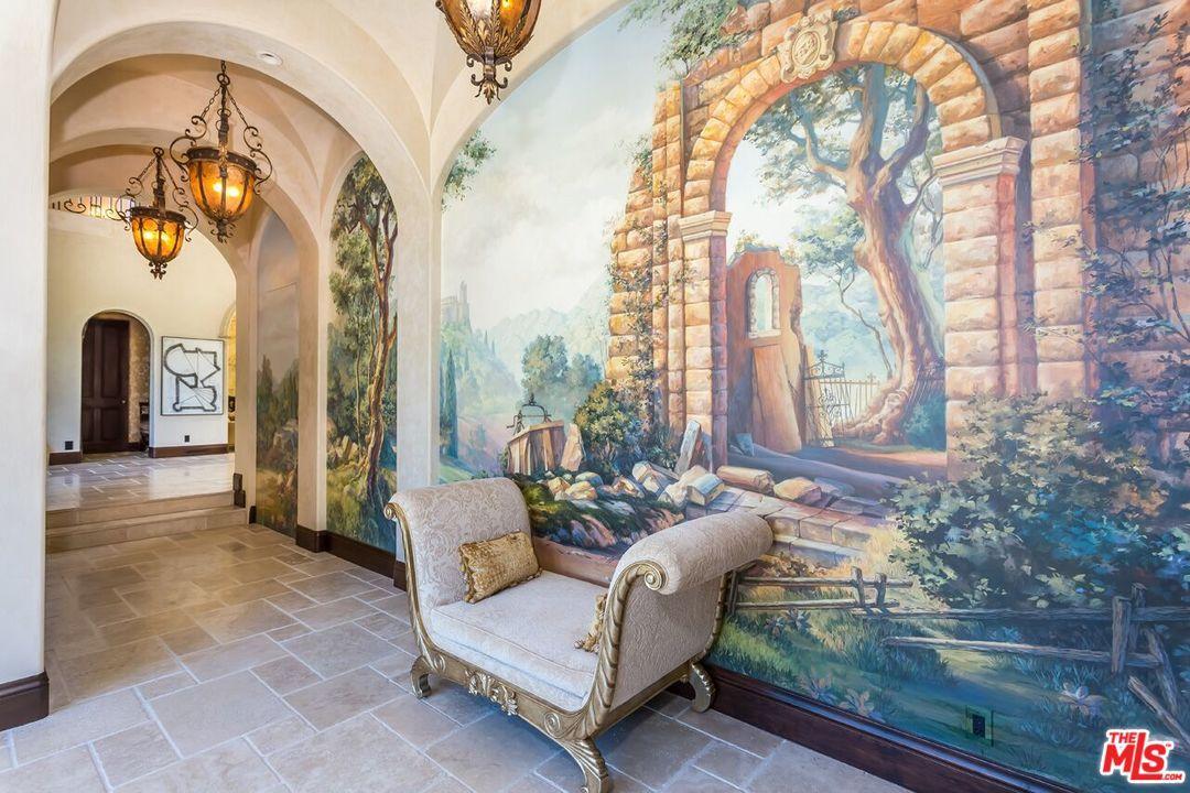 Retired professional baseball player Barry Bonds lived a life of luxury in this 17,100-square-foot mansion from 2002 to 2014. The lavish, Mediterranean-style house has had two owners since his departure and now it is back on the market asking $33 million.Although the interiors naturally shifted in style when the seven-bedroom property changed hands, some of Bonds’ favorite design elements still remain. Most notably, the hand-painted frescoes he commissioned that harken to Italy have been preserved. These elaborate murals in combination with ornate crystal chandeliers create an aesthetic that feels too formal in some rooms, but a few minor changes would help the home feel more fresh and livable.Spaces like the grand room, which boasts 30-foot ceilings, are airy and bright in contrast, encouraging you to relax and unwind. Other perks that potential buyers will love include beautifully landscaped lawns, a sparkling pool, a 12-seat home theater, and a top-of-the-line gym.Tomer Fridman of Compass has the Beverly Hills listing, which was first reported by Mansion Global.
