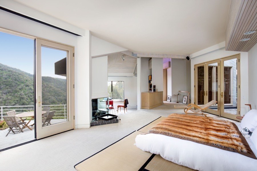 Sited on 3.8 acres on a coveted gated street, the Marshal Lewis-designed modern home features a breezy open floor plan and walls of glass that take advantage of the surrounding canyon views. Its 5,446-square-foot interiors are flooded with natural sunlight and given Carrozzini’s profession, it comes as no surprise that there is an enviable home screening room. Additional highlights include a gym, manicured gardens and a resort-like swimming pool.