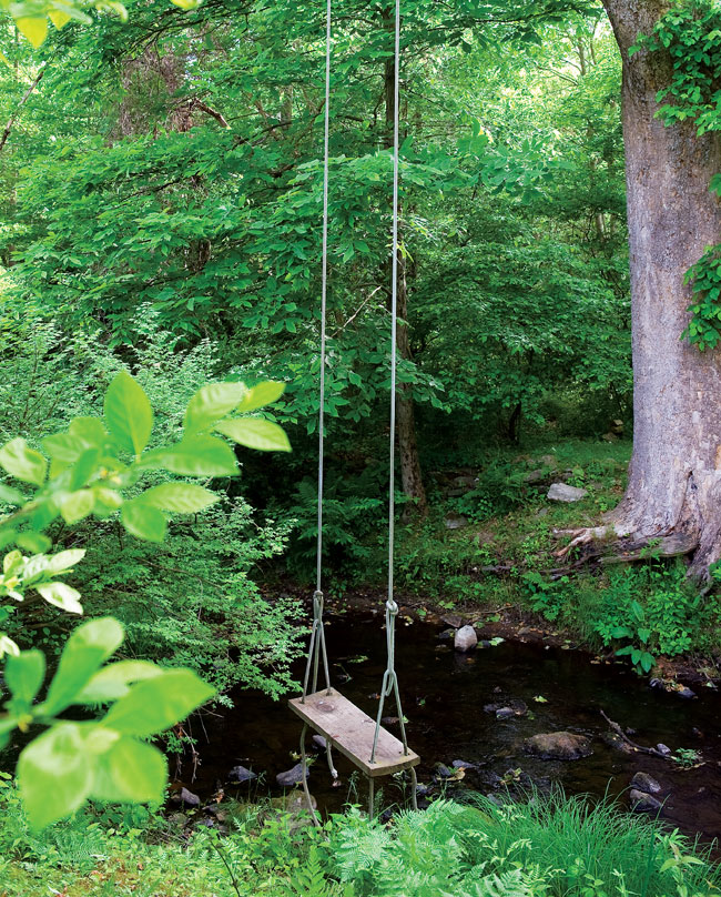Seeing Red | A tree swing glides over the mill stream.