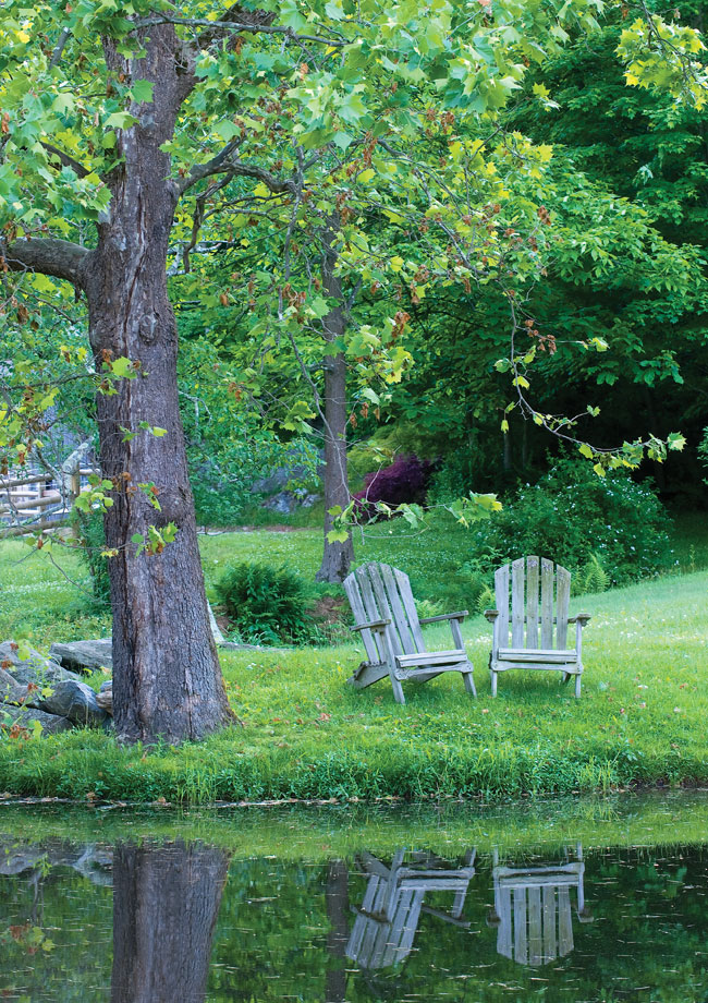 Soft Edges | The family is drawn to the water. Jayne placed chairs beside the mill pond in order to relax while watching the wildlife.