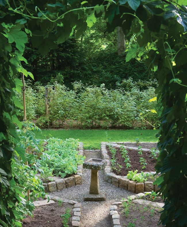 Slow Food | Weary of walking down the hill to pick veggies, Jayne planted a potagér just steps from the front door.