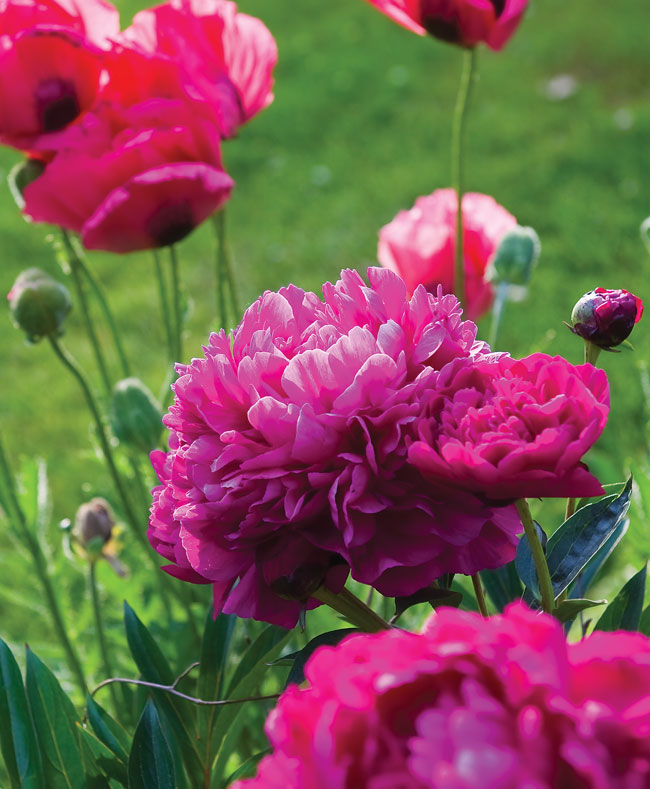 Seeing Red | Somehow the disparate reds of Oriental poppies and herbaceous peonies work together.
