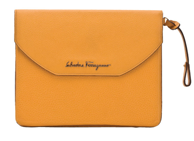 SIMPLY STATED | Be the envy of your traveling companions with Salvatore Ferragamo’s yellow calf leather iPad case; it protects while looking amazing. $390, available at Salvatore Ferragamo boutiques nationwide, (800) 268-8916, ferragamo.com.