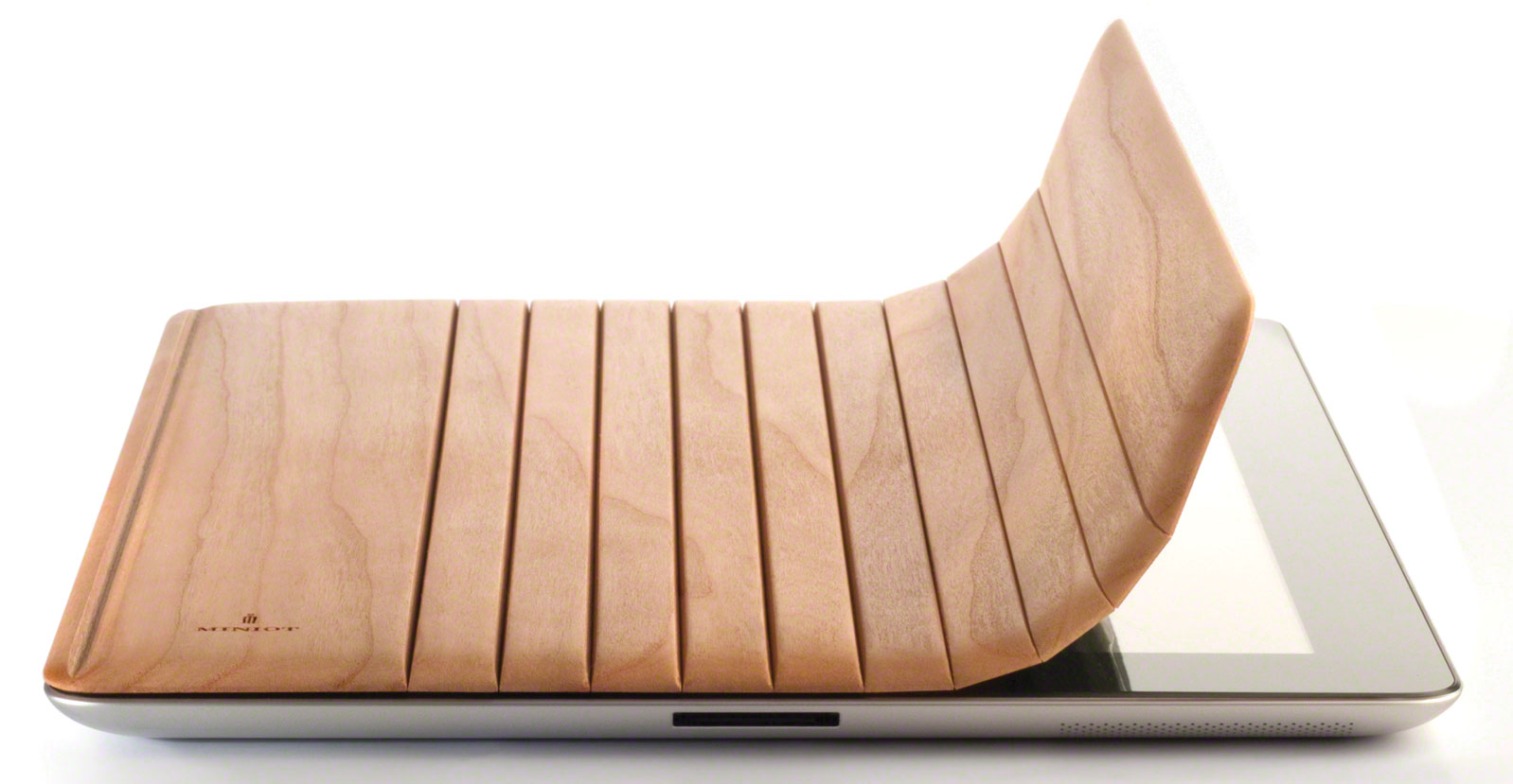 THREE IN ONE | Made in Holland from the finest wood, the Miniot iPad cover offers contours for a good grip and safer handling. The flexible cover is also a three-way stand, so it provides maximum efficiency for work or play. Starting at $75, miniot.com.