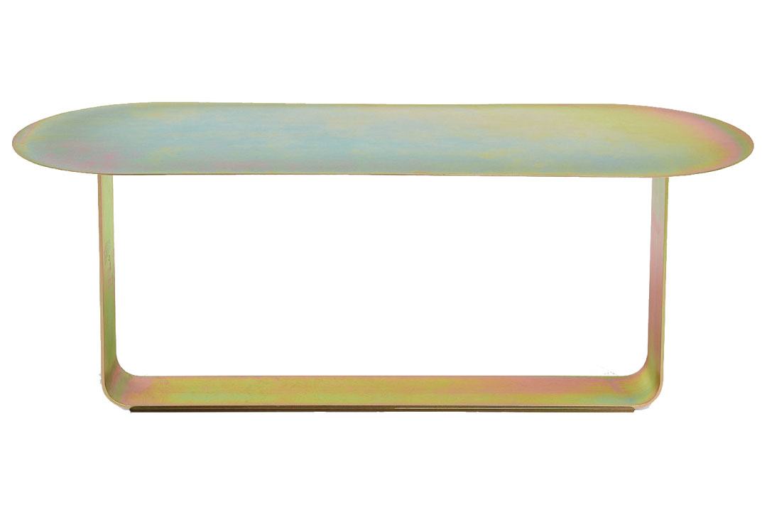 Norwegian design team Everything Elevated chemically processed this steel side table to bring out its unique colors. $1,595, at ABC Carpet & Home, 888 Bway., NYC, 212-473-3000.