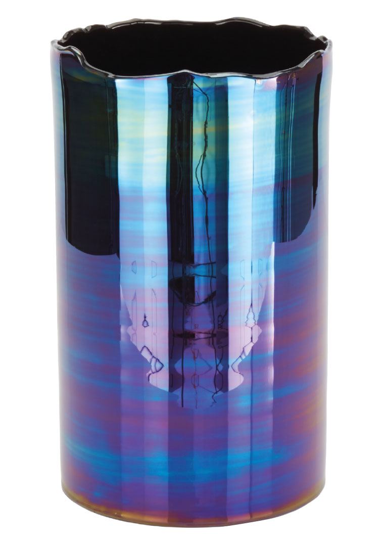 Designed by Tom Dixon, the Oil vase shimmers like a dragonfly’s wing. $420, 19 Howard St., NYC, 212-228-7337.