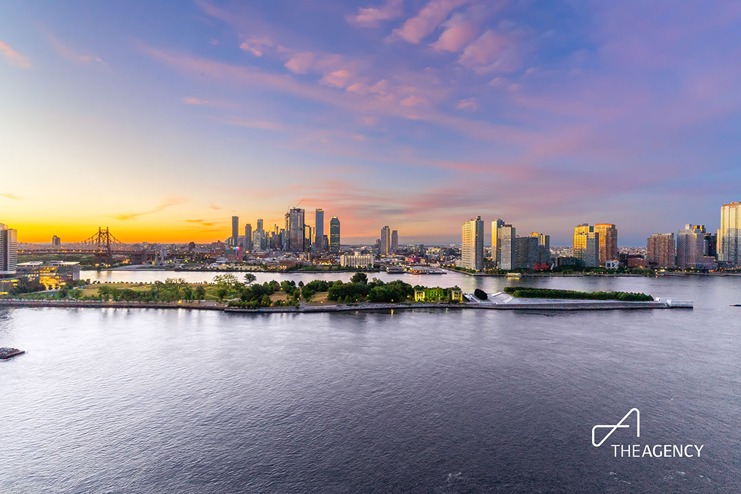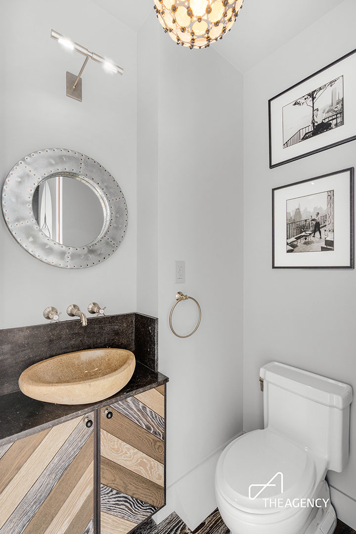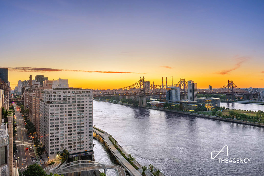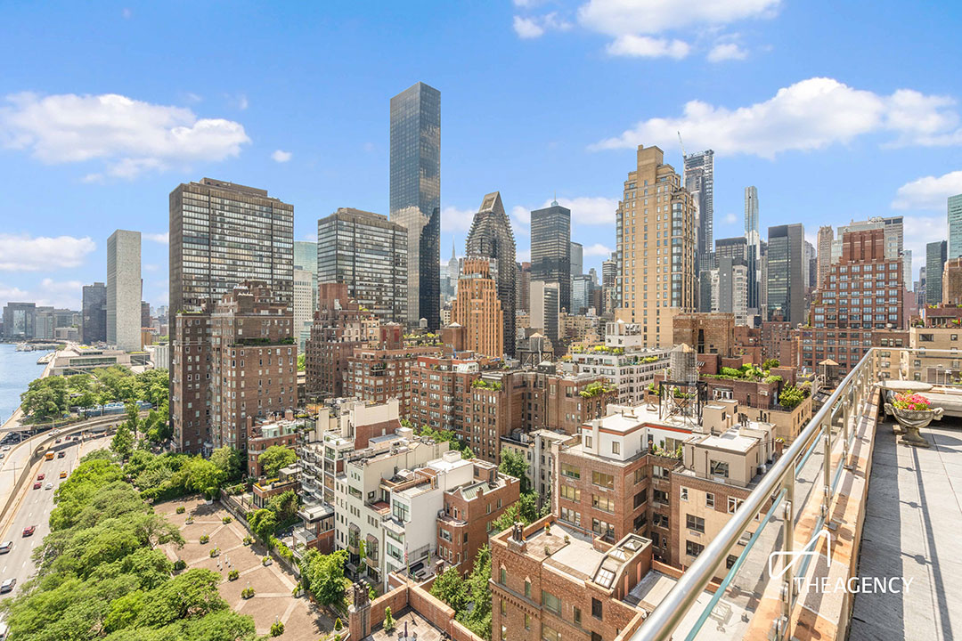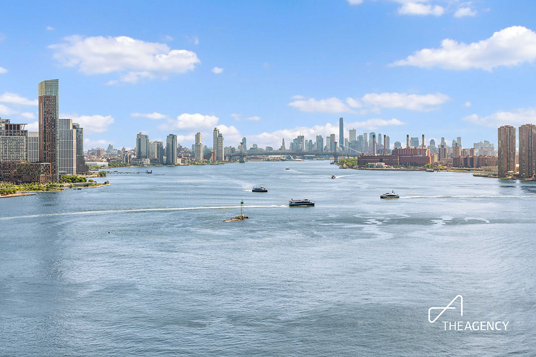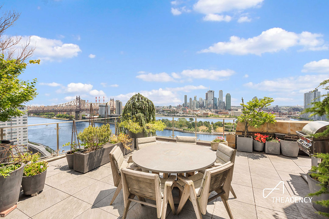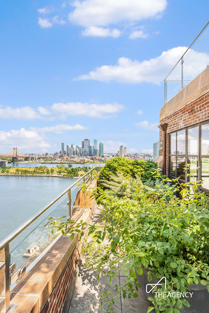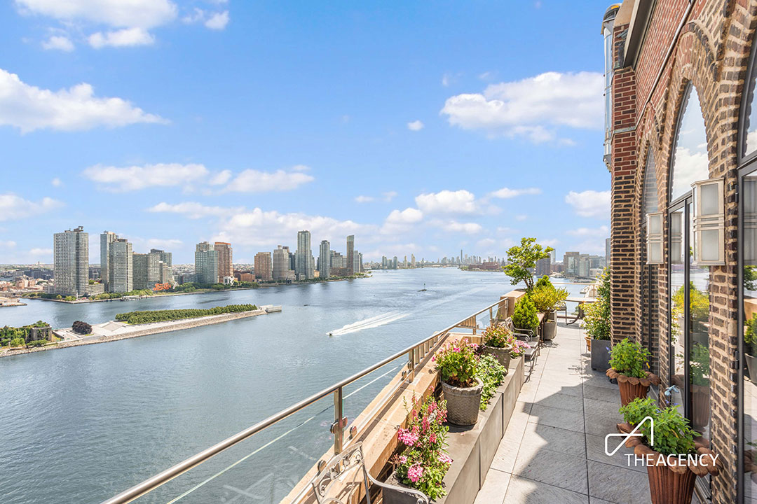 Other notable features include an elevator that opens directly into the home, a glass sunroom, walk-in closets, and 11-foot ceilings. “Because of the way Manhattan is shaped and the height of the apartment, it feels like it is in the middle of the river with no surrounding buildings,” says listing agent Tyler Whitman of The Agency, who once had a role on screen as well.