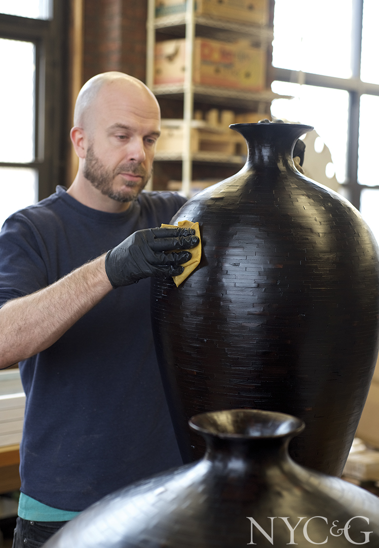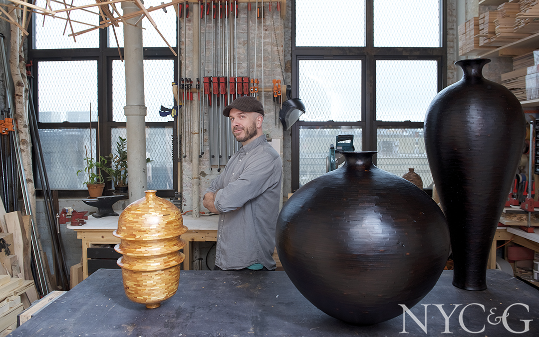 The saying “one man’s trash is another man’s treasure” couldn’t be truer in the case of woodworker Richard Haining, who makes sculptural vessels, light fixtures, and table bases out of discarded wood that he salvages from water towers, lumberyards, and New York City dumpsters. “People typically get rid of their scrap wood, but just because a material has been thrown away, it doesn’t mean it’s unusable,” says the Greenpoint-based craftsman, an Atlanta native who earned a degree in furniture design from the Rhode Island School of Design in 2005. “It just requires more consideration.”