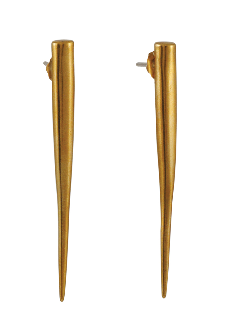 K/ller Collection Large Quill Spike earrings in antiqued brass, $70, at Clay Pot, 162 Seventh Ave., Brooklyn, 718-788-6564, clay-pot.com.