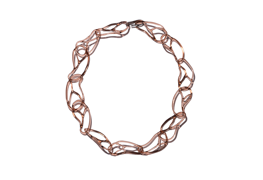 Jane D’Arensbourg Plum Lattice 20-inch glass chain necklace with sterling-silver clasp, $600, at Quiet Storms, 142 Grand St., Brooklyn, 718-782-1547, quietstorms.com, janedarensbourg.com.