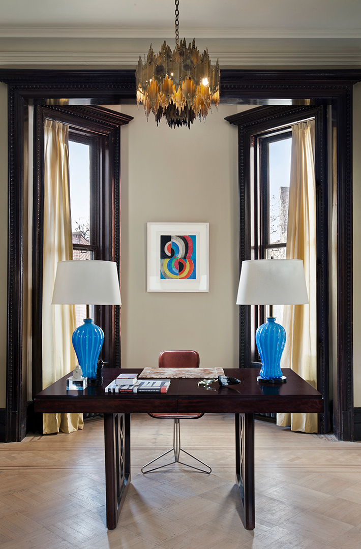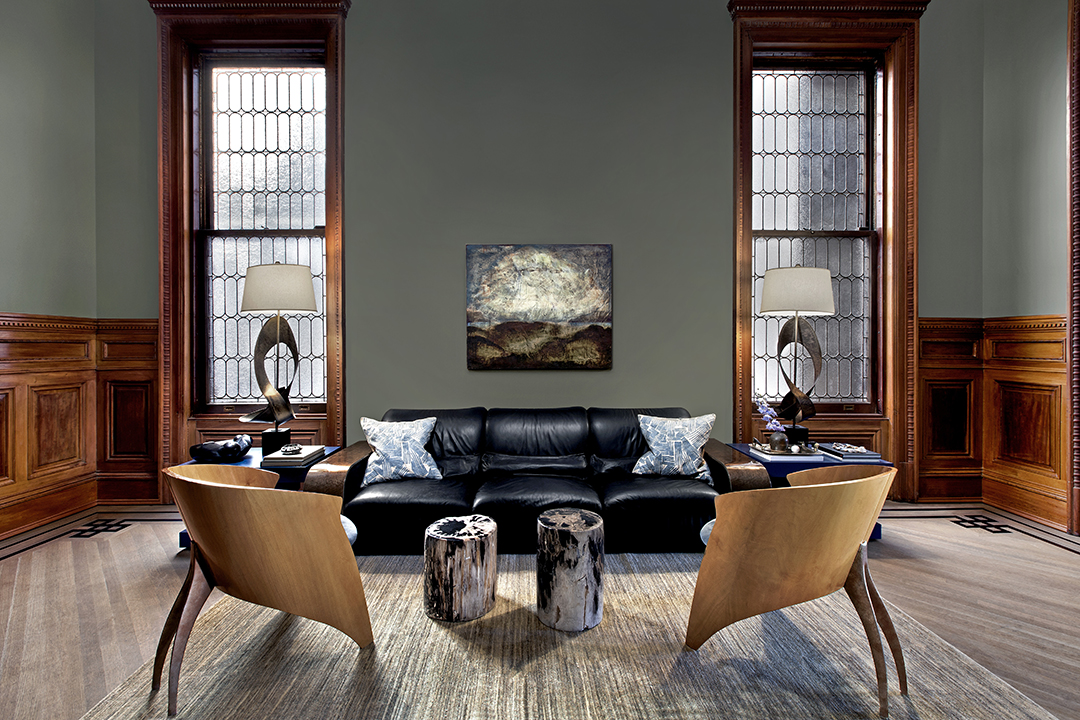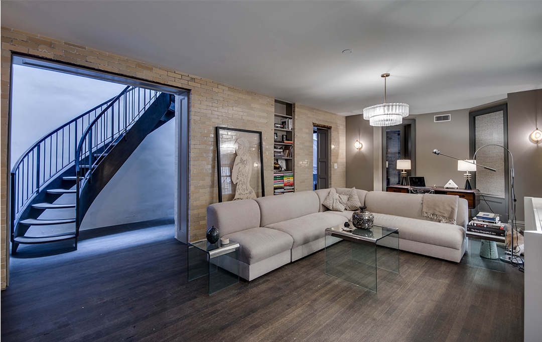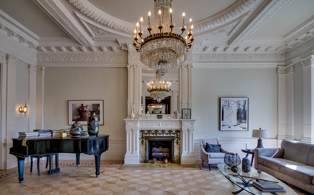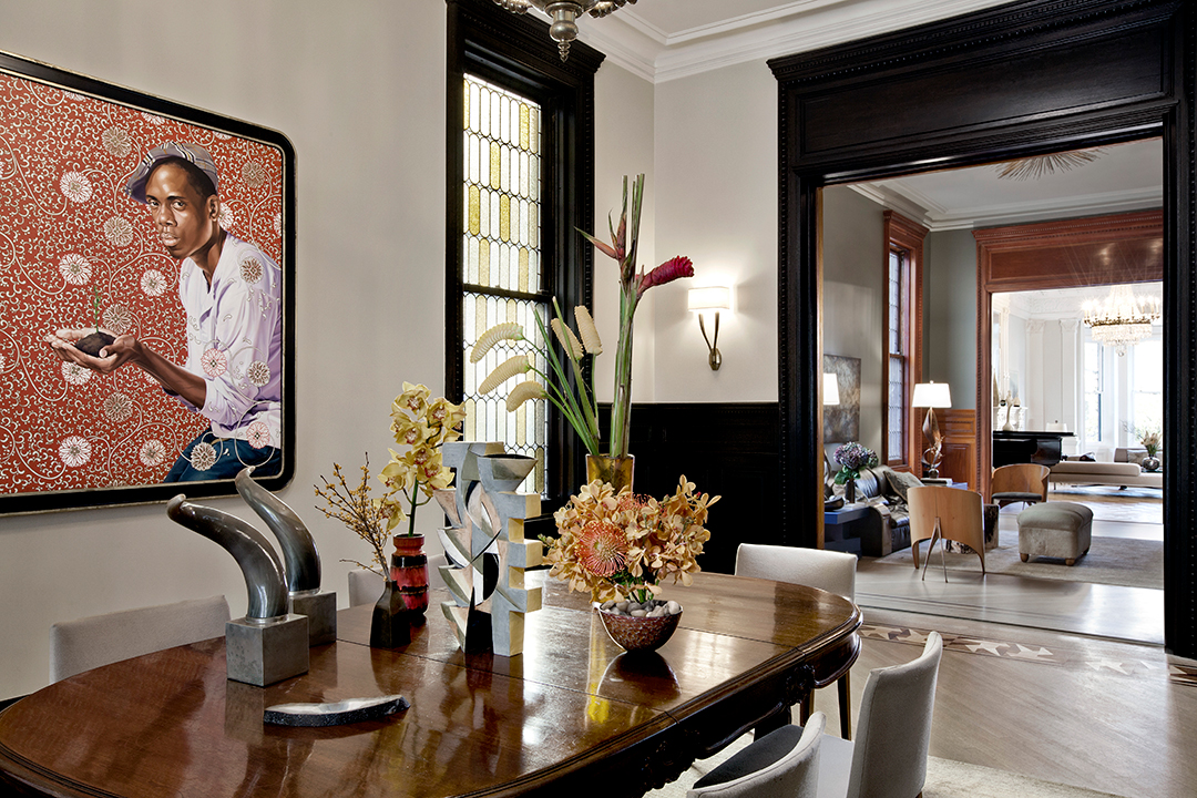 Dubbed the Pfizer mansion, this 25-foot-wide Queen Anne–style townhouse in Clinton Hill was built in 1887 by German chemist and Pfizer pharmaceuticals co-founder Charles Erhart as a gift for his daughter. The five-story 10,000-square foot residence, currently listed for $13.5 million with Angela Ferrante of Brown Harris Stevens, once housed the temporary offices of the Brooklyn Public Library and, later, the private quarters of a Roman Catholic bishop.Musician Legion Davies purchased the seven-bedroom home—which features eight fireplaces, stained-glass windows, multiple skylights, a wine cellar, front and rear gardens, and parking—in 1991 for an undisclosed sum. When the current owners bought the mansion from Davies in 2007 for $3.2 million, they embarked on an extensive renovation, preserving the vintage Otis elevator, inlaid wood flooring, and intricate plaster moldings. “It has been meticulously restored,” Ferrante says, “to provide modern comforts while honoring its history.”