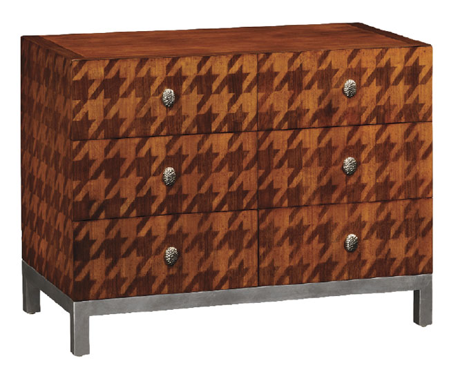 From bowties to blazer buttons, fashion designer and Connecticut resident Alexander Julian teams up with Jonathan Charles to create a menswear-inspired furniture collection. Capture the runway look with this Houndstooth chest, featuring a hand-inlaid design in two shades of walnut. $2,499, through Stickley, Audi & Co., White Plains, NY, 914-948-6333, stickleyaudi.com, alexanderjulian.com, jonathancharlesfurniture.com.