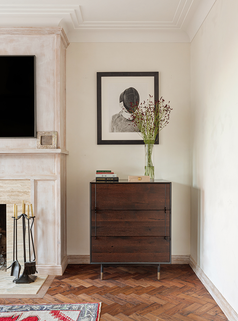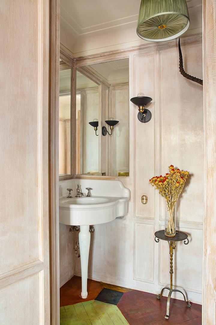 Crowning the circa-1910 structure, the unit benefited big from a gut renovation that painted sophistication through every bit of the 3,000-square-foot floorplan. The double-height great room is the dazzling anchor of the home, featuring details like a glistening chandelier, classic herringbone floors, and peeks of the charming upstairs bookshelves. But, an urban sense of place does come through with some clear East Village boho flair. The kitchen adds funky pops of color through its multicolored floors and retro-esque center island.