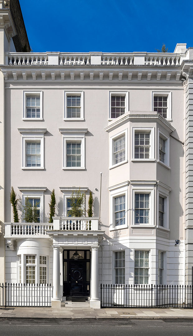 The Lyall Street address dates back to 1838, but the sellers extensively renovated it, paying homage to its glitzy past owner, John Aspinall. Marble and murals are accompanied by chic finishes that only add to the glamour. Beauchamp Estates holds the pricey listing.