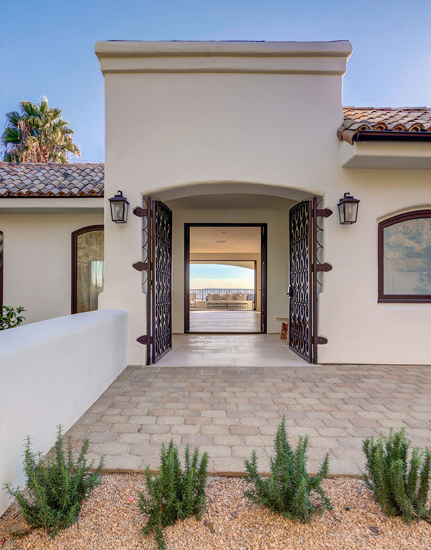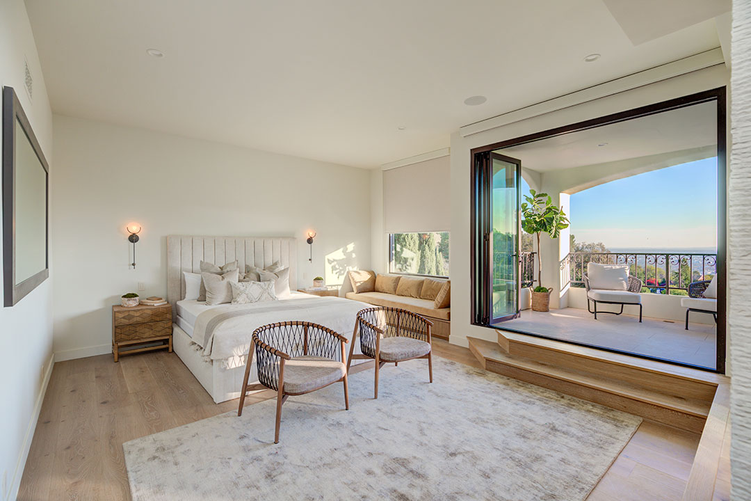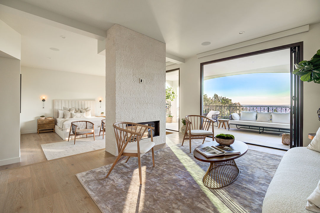 The recently renovated spread is nearly 7,000 square feet and totals four bedrooms and seven bathrooms. The 2,000-square-foot primary suite is the ultimate oasis, with a fireplace, wet bar, balcony, indoor/outdoor lounging, airy ensuite bathroom, and large closet waiting to be filled with red carpet-worthy looks.