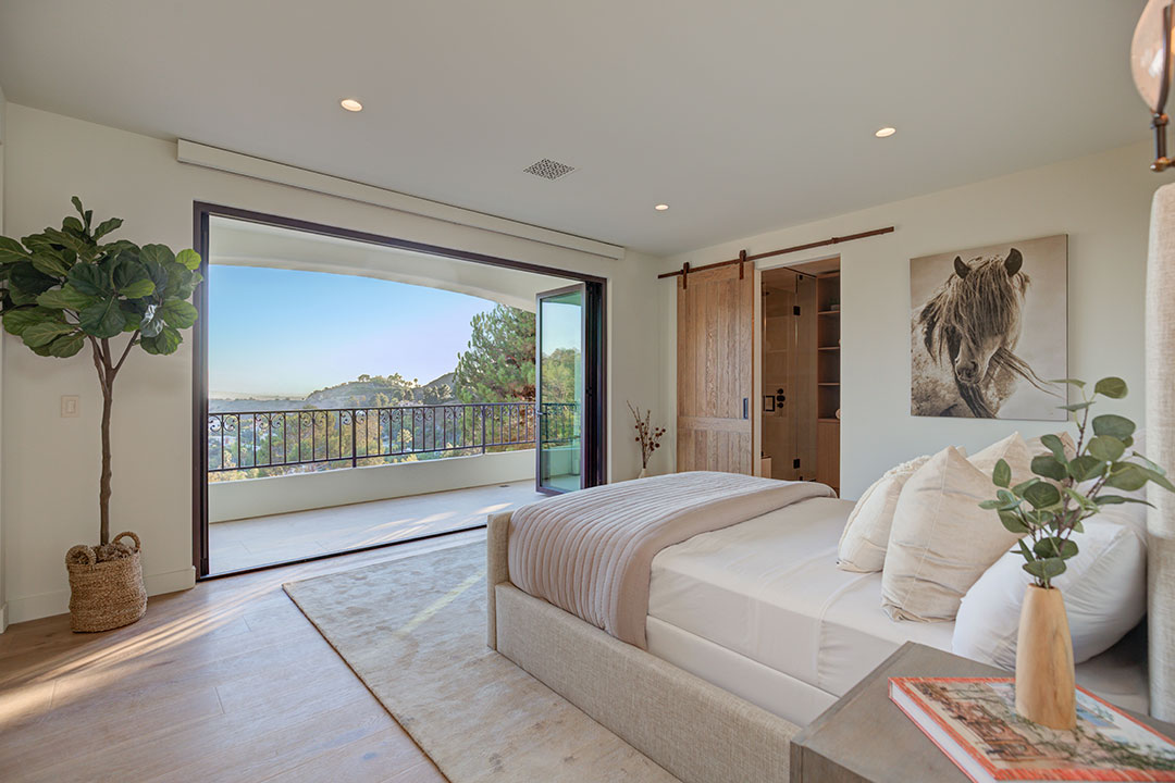 Called “Villa de Vistas,” the celebrity home boasts views of the Los Angeles skyline and SoFi stadium. Expansive glass doors and windows allow for these calming vistas to appear around every turn and also lead out to breezy outdoor spaces. While the residence is a true retreat, it is also conveniently located near Hollywood, Studio City, and Runyon Canyon—talk about the full Los Angeles lifestyle being at your fingertips.