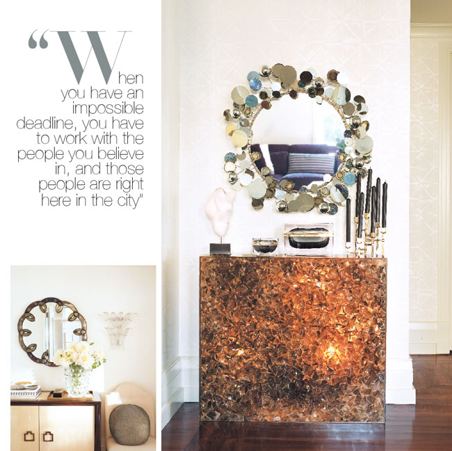 Converted into luxury condos in 2006, the rechristened Barbizon/63 is just as desirable a residence today. “Our clients found us through a book of mine and hired us on blind faith,” says Kemble of the out-of-towners, who wanted to turn their unit into a chic, comfortable, low-maintenance pied-à-terre. “They flew into the city to meet us and expected their home to be ready by the next time they came to town. They had no intention of micromanaging us; the only criterion was that pieces had to be genuine and not look like they came from a showroom. This project was really about using our local New York resources. When you have an impossible deadline, expensive materials, and lots of labor involved, you have to work with the people you believe in, and those people are right here in the city.”