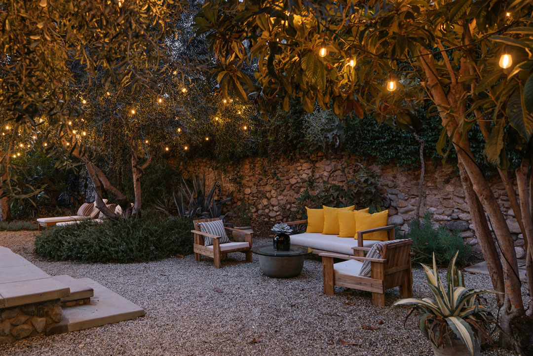The grounds are just as charming as the three-bedroom, two-bathroom house itself. The .42-acre property blooms with native plants like sage, buckwheat, deer grass, manzanita, ceanothus (“Californian Lilacs”), Matilija poppy, and toyon. It also boasts olive trees, California pepper, and Valencia orange trees perfect for farm-to-table living. But, for these homeowners, other functionality also came into play. “The mature pair of avocado trees next to that garage has provided fruit and welcome shade to the garden and the garage/ceramic studio,” says Draper.