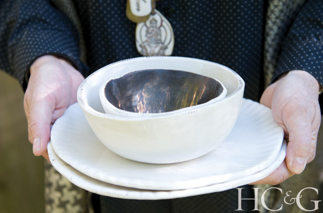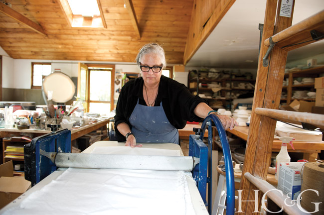 A founding member of both the Watermill Center Community Board and the Clay Art Guild of the Hamptons, Mougin started working in ceramics in 1999, after her marriage dissolved. Since then, she has built an avid client list, including high-profile artists and a famous actor who has filled his Irish castle with her dinnerware. Most recently, Mougin undertook a project for East Hampton’s LongHouse Reserve, copying one of founder Jack Lenor Larsen’s textiles and turning it into special plates to be sold at auction for the nonprofit’s annual benefit last month.