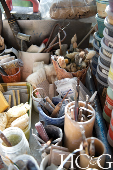 Ramp firing, or bisque firing, in an electric kiln is the next step, followed by the application of a clear or mirror glaze and another firing that completely bakes the clay, creating the finished piece. “Putting my hands in clay was a way of healing at first,” Mougin says of the process. “But once you get your hands into porcelain, you never want to go back.”