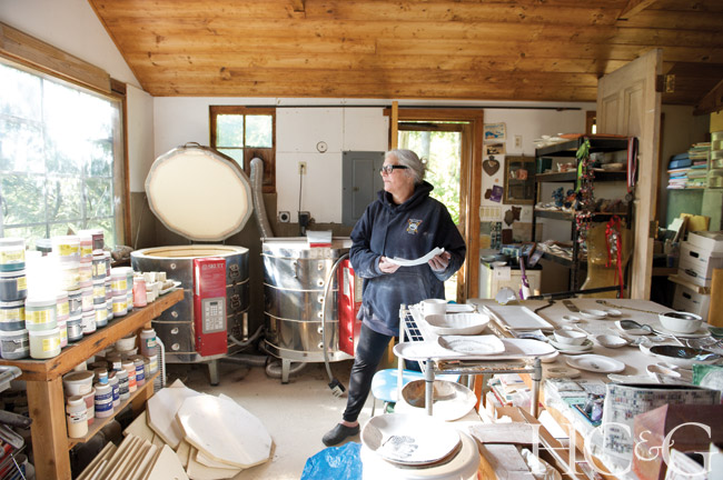 A lifelong appreciation of beauty informs all of ceramist Mae Mougin’s work. A former fashion stylist and photographer’s muse, Mougin creates platters, plates, bowls, and decorative-yet-functional objects in her studio alongside Davis Creek in Southampton. “It’s a body of water that’s always in motion,” she says of the natural inspiration that lies just steps from her front door.