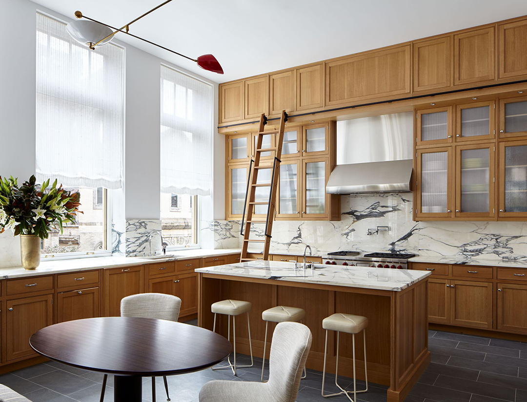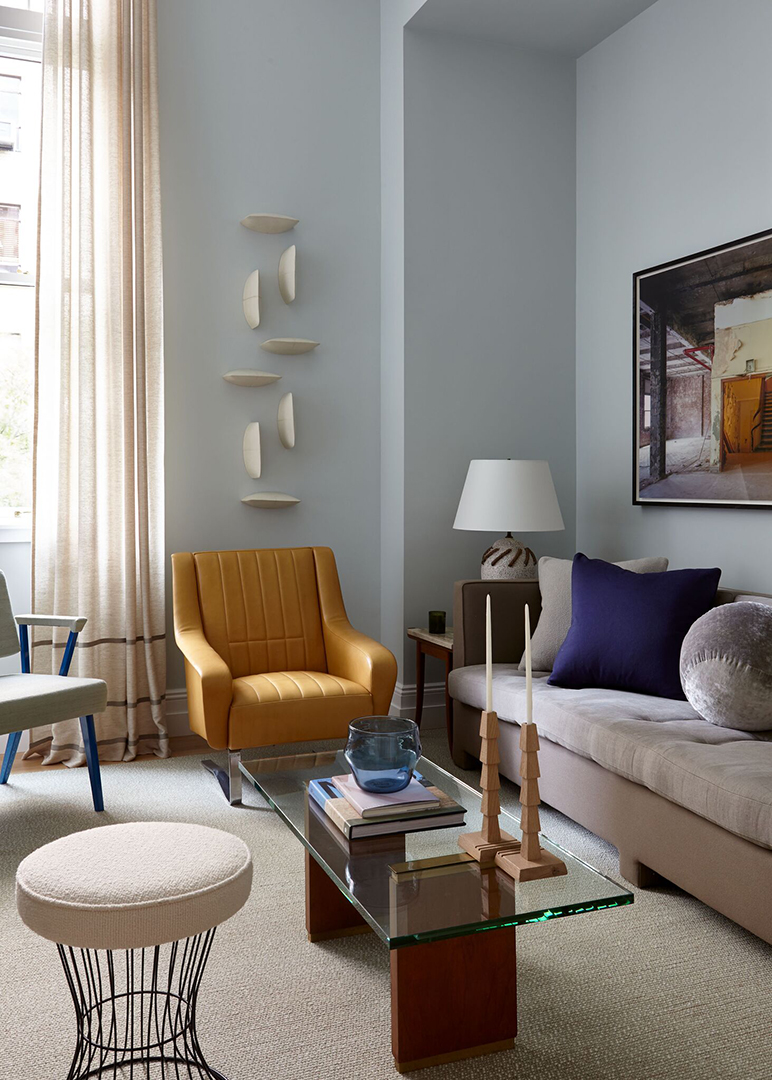 “The marriage of Tamarkin Co.’s signature spare modernist aesthetic with the historical bones of 555 West End Avenue provided the ideal envelope for me to create something that felt both inspired and fresh, said Charlie Ferrer. “The building integrates seamlessly the best of modern conveniences with the charm of pre-war living. My interiors reflect this balance. Vintage and custom pieces intermix with supple textiles and floor coverings throughout the project. The result is an urbane home that is uniquely comfortable, highly livable and inspiring in its eclecticism.”