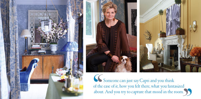 What is special about Charlotte Moss Decorates (Rizzoli, 2011), your seventh book on home decorating? The theme is “Where do you begin?” You have four walls, a ceiling and a floor. It’s all blank, so where do you start? Where do you begin? Inspiration can come from anywhere. It’s as diverse as a creamsicle palette or a dress in an old movie. You get a bouquet of flowers and see two colors next to each other, maybe a cerise anemone beside a pale blue hyacinth. That could be the thing that sparks it. As Bruce Springsteen sings, “You can’t start a fire without a spark.” For each room, you’ve assembled a collage. How does that figure into design? I clip, photocopy and save images and things I respond to, maybe a fabric, a floor plan, a window treatment or a beautiful piece of hardware. Then, I put them together on a piece of paper, edit and discriminate—only the best will do. The result is a piece that suggests something to you. It’s the basis that starts to pull the scheme and elements together. But there’s always that other intangible element—the thing that’s going to give it atmosphere. For instance, someone can just say Capri and you think of the ease of it, how you felt there, what you fantasized about. And you try to capture that mood in the room. If you were assigned to do a room in one color, what would you choose? Aqua. It’s soothing and can be combined with so many things. It can be casual with rattan or elegant with gilt. I’ve just finished a fabric collection that has many shades of it. It’s a fresher take on that whole Pompadour blue and blue-gray palette. If you had to evacuate your home, what keepsake would you take? I love what I have, but I don’t want to worry about it or be dictated to by it. I’m more likely to favor items given to me or made for me—things that other people took the time to seek out for me. What celebrity would you like to design a room for? Someone who doesn’t rely on someone else to style and dress them every day, someone smart who’s been around awhile—maybe Annette Bening or Sigourney Weaver. Which room in this book would you most like to live in? The one on the cover because it’s a room where I can sit and have a conversation, write a letter, hang my art, lounge on a daybed with a good book and my two dogs, Daisy and Oscar.