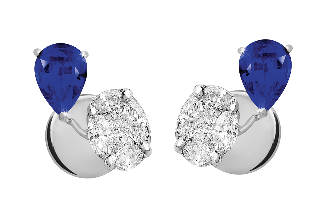 sapphire and diamond duo stud earrings in 18k white gold, $7,690.