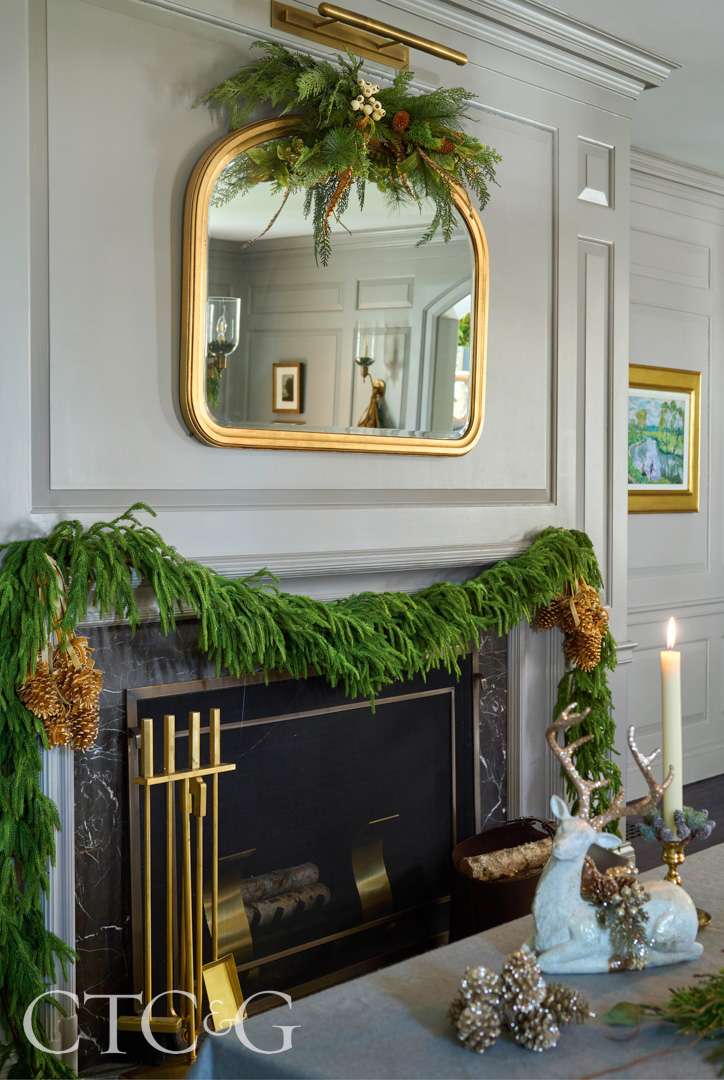 The feeling is mutual, and Roughan has treasured these clients for the past eight-plus years through designing multiple homes and now, creating a Christmas wonderland. The designer starts collecting items in August and September before getting to work crafting decorations. “My office is in a barn, and we’ve had a lot of fun there, glue-gun in hand,” she says. “The décor is very curated and very intentional, down to the candles and candlesticks.”