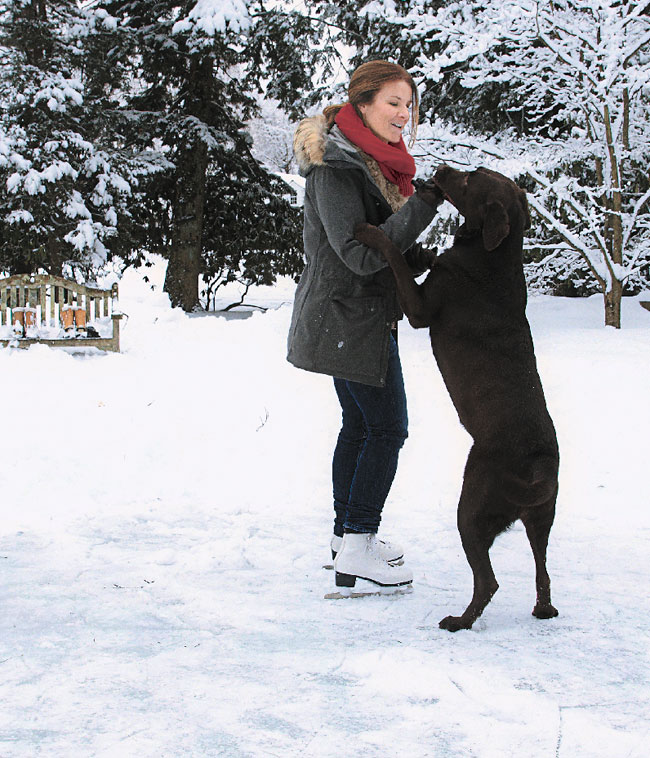 Great Skates | Homeowner and designer Susan Oster and Dakota, the family’s chocolate lab, take a spin on Wardwell Pond.