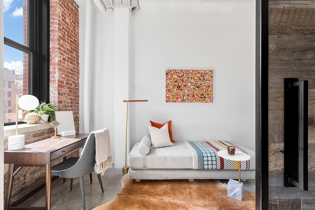 Sara Eisen, CNBC co-anchor of “Squawk on the Street” and “Power Lunch,” and her husband, Matthew Levine, are ready to part ways with their stylish Chelsea apartment. The 1,200-square-foot spread is full of charming details and now on the market for $2.595 million.Eisen and her husband welcomed a son in late 2017, which may be why they’re leaving this cozy spot. Although the apartment has two bedrooms, it hardly leaves room for guests or further family additions.Located in a 1880-built former factory that was converted into a condominium in 1996, the unit boasts exposed brick walls, 12-foot beamed ceilings, and minimalist concrete floors. Industrial chic interiors are further enhanced with an oak barn sliding door, but stay modern thanks to contemporary lighting fixtures and clean lines in the kitchen and bathrooms. Oversized windows fill the inviting residence with light.The TV anchor’s sister, Natalie Eisen, and Adrian Noriega of Core have the Spears Building listing. The news was first reported by 6sqft.