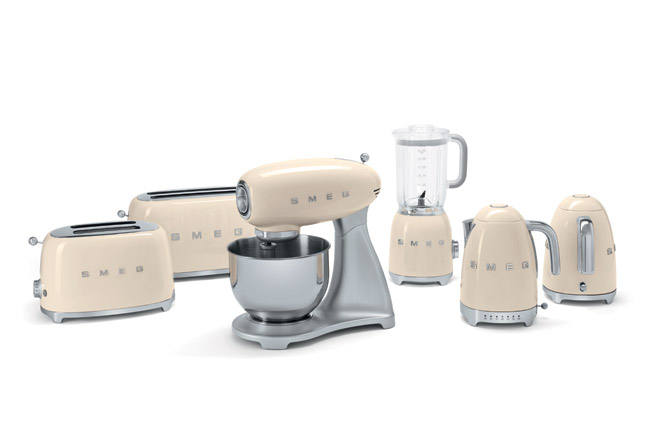 Smeg has introduced an innovative line of retro-style small appliances that sport charming aesthetics and powerful performance, available in an array of colorful hues plus subdued shades like black, chrome and cream (pictured). $120–$450, A&D, 212-265-5378; through Aitoro Appliances, Norwalk, 203-847-2471, aitoro.com, smegusa.com.