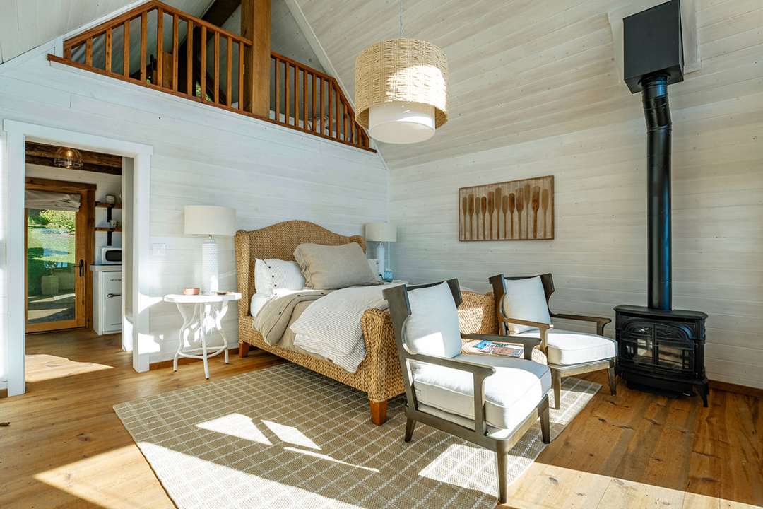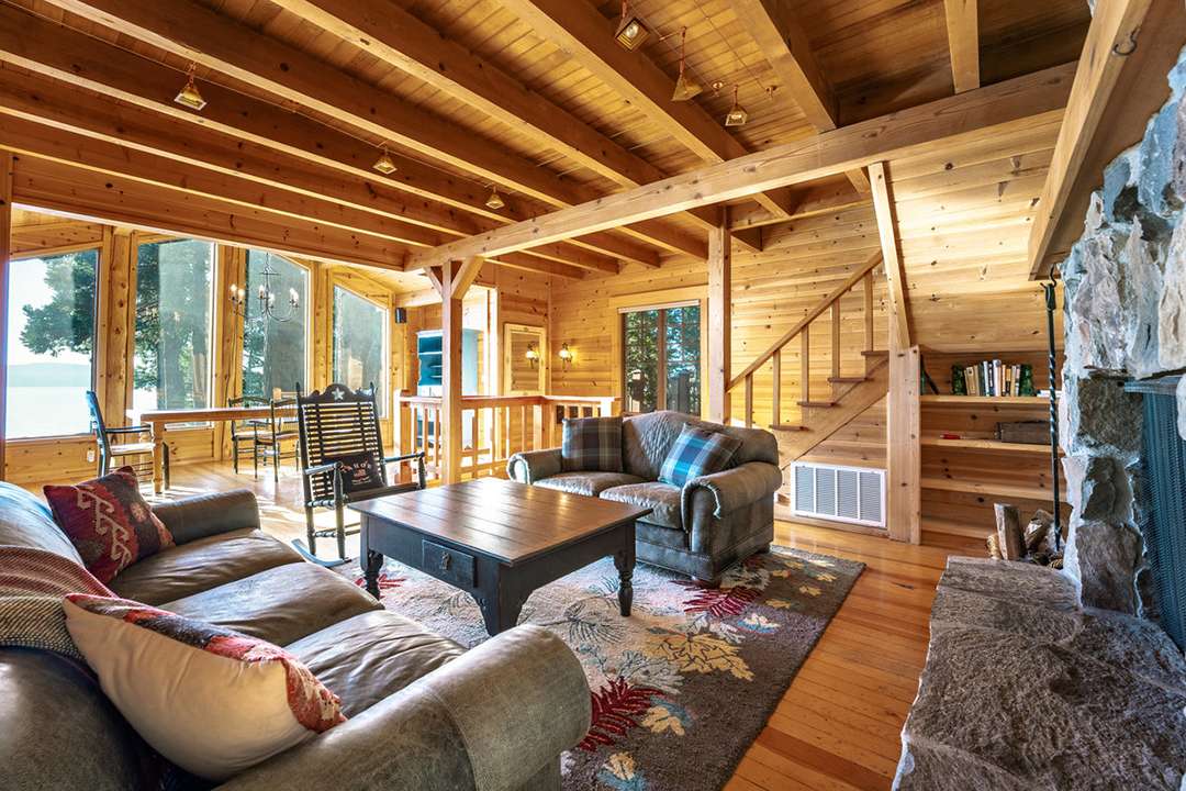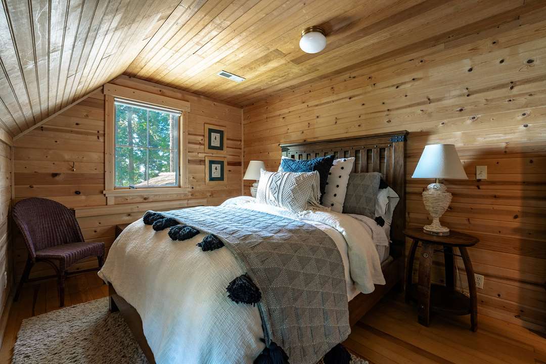 Whimsical, cozy, and expansive, the property’s three houses are dressed in wood for classic cabin style. They brim with warmth. Closest to the water and dock, the Lake Cabin, affectionately dubbed “Mema’s cabin” by the Tosh family, is the most modern. In fact, in 2019 the sellers completely transformed it from lake storage into a gorgeous sanctuary where people can stay or gather with the water steps away.