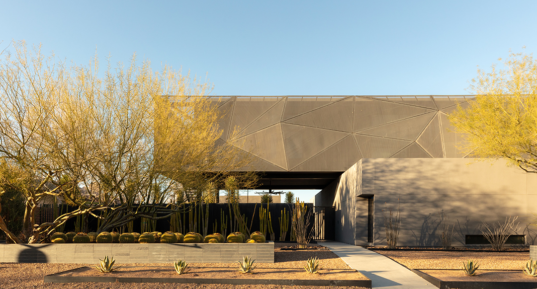There are several symmetrically landscaped courtyards across the property for basking in the dry, desert heat. Other outdoor amenities include an infinity-edge pool, an outdoor kitchen, and a rooftop deck where you can take in the city lights. Ivan Sher of IS Luxury represents the listing.
