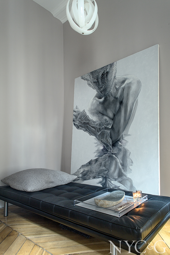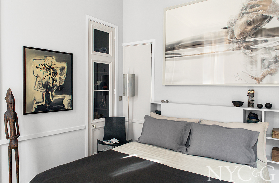 Work by Grace Roselli also hangs in Silver’s bedroom. The 19th-century sculpture is from the Republic of Congo.