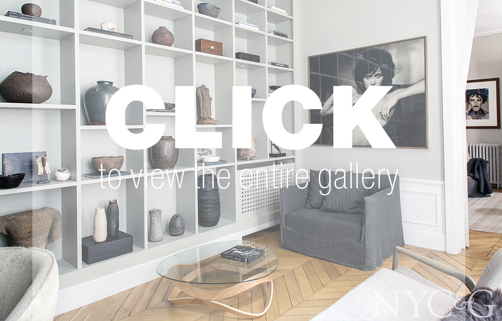 As the couple’s life together in Paris evolved, they started looking for a larger home to share and were happy to discover that “it found us,” Silver recounts. “We walked into a space filled with wall-to-wall floor-to-ceiling bookshelves, which presented the perfect backdrop for displaying our collections.” Silver, whose principles of serenity, understatement, and soulfulness are deeply embodied in her work, was doubly appreciative that the flat was an unusually serene oasis in the middle of a bustling district popular with tourists and ex-pats. “It’s so quiet when you walk into the building’s courtyard,” she says. “That kind of calm and tranquility in such an energetic shell is quite dramatic.”