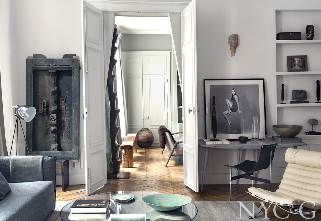 Mar Silver’s love affair with Paris began with, appropriately enough, a romance. The interior designer became reacquainted with an old friend while traveling in France eight years ago, and their connection blossomed into a relationship. “I discovered the city in a whole different light,” muses Silver, who recently acquired a luminous flat in the city’s bustling Sixth Arrondissement, a second home for the Westport, Connecticut–based decorator that is now a sanctuary for her and her partner. Not only has the new Left Bank home evolved into a repository for objects and artifacts gathered on her many travels around the world, but it also serves as a revolving display space for the couple’s burgeoning art collection.